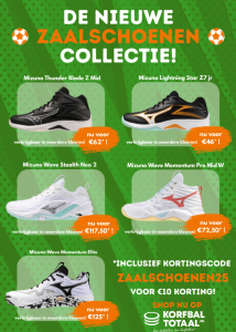 Het zaalseizoen staat weer voor de deur en dat betekent dat korfballend Nederland op zoek is naar nieuwe zaalschoenen. Om jullie als onze gewaardeerde klanten te bedanken, bieden we een speciale korting van €10 aan op zaalschoenen voor jullie als lid van Oost-Arnhem (bij een minimaal bestelbedrag van €50).