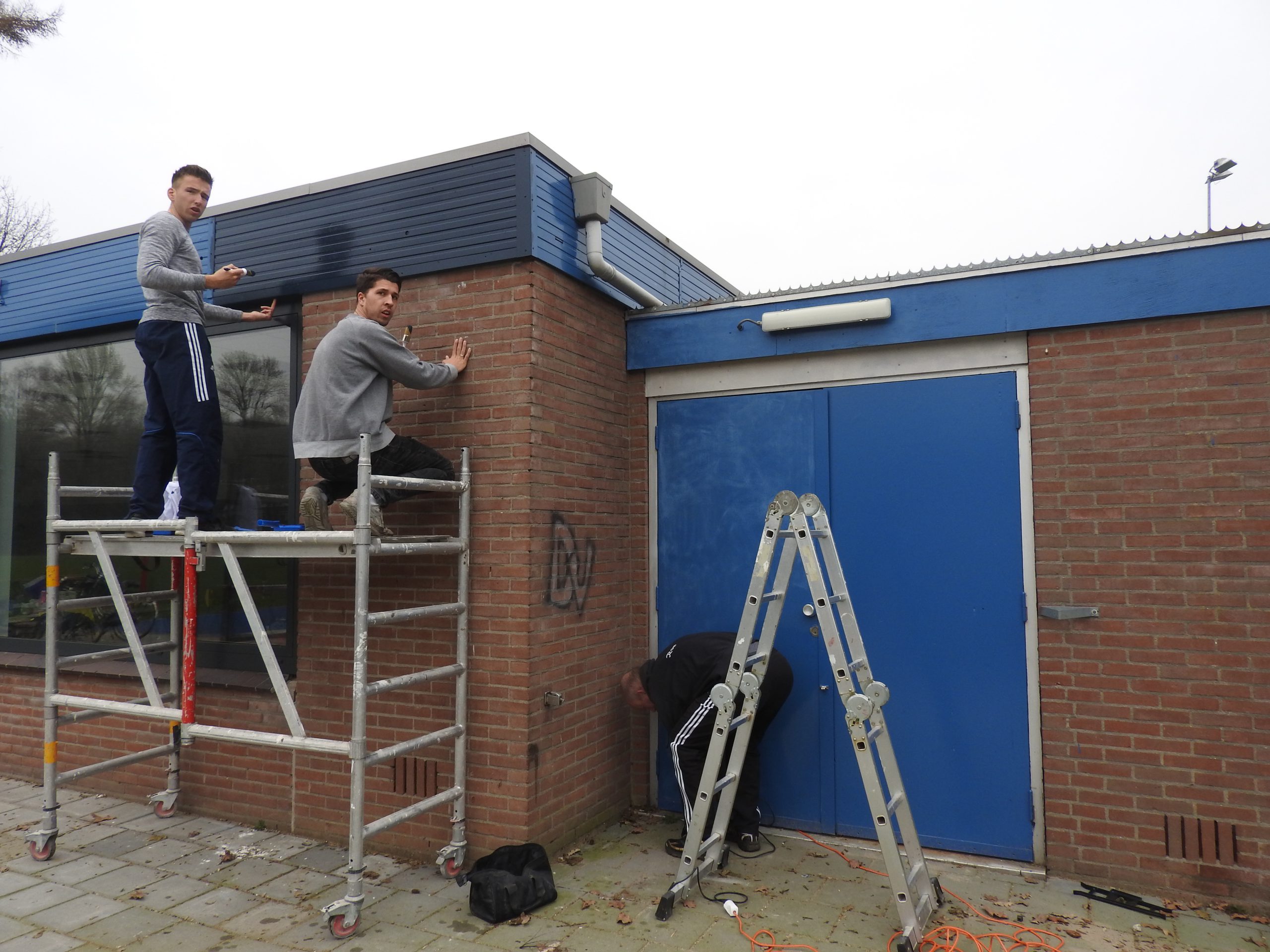 Afgelopen zaterdag zijn 12 leden al flink aan de slag geweest in ons clubhuis. Kitten, schuren, schilderen. De bestaande kleedkamers krijgen een frisse laag verf en zien er weer als nieuw uit. Maar we zijn nog niet